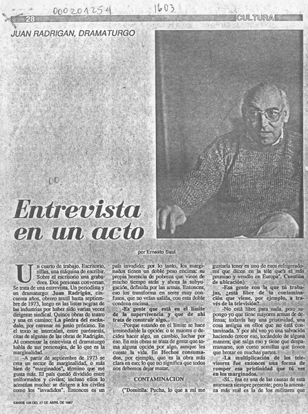 Entrevista en un acto [entrevista] [artículo] : Ernesto Saul.