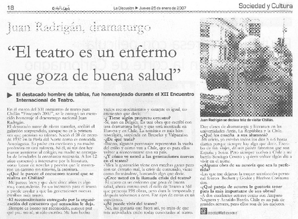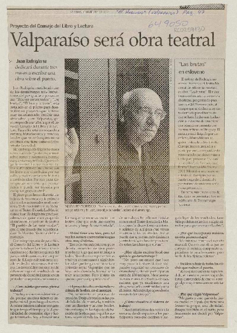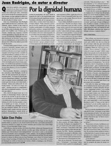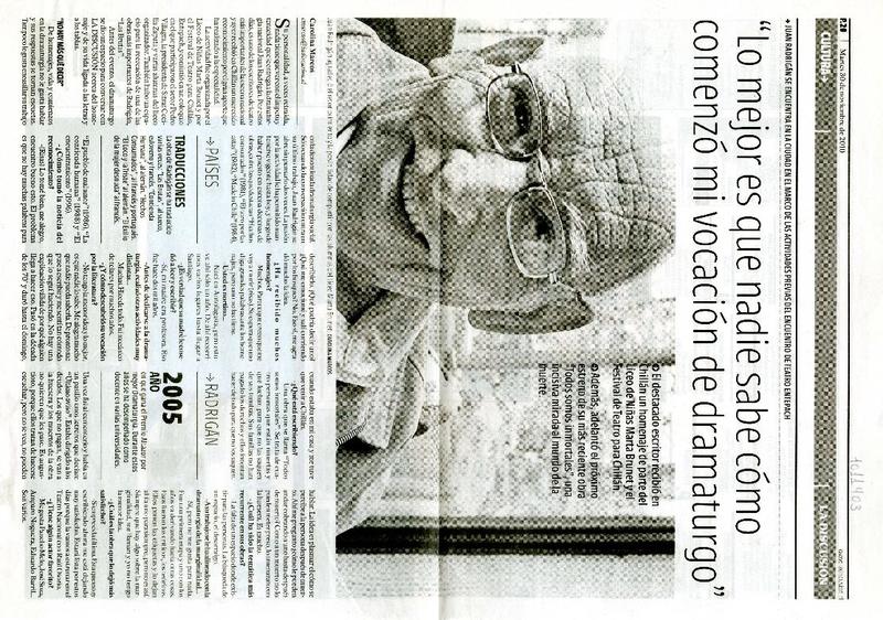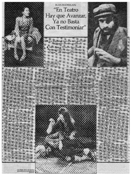 Juan Radrigán, "En el teatro hay que avanzar, ya no basta con testimoniar" [artículo] Rigoberto Carvajal.