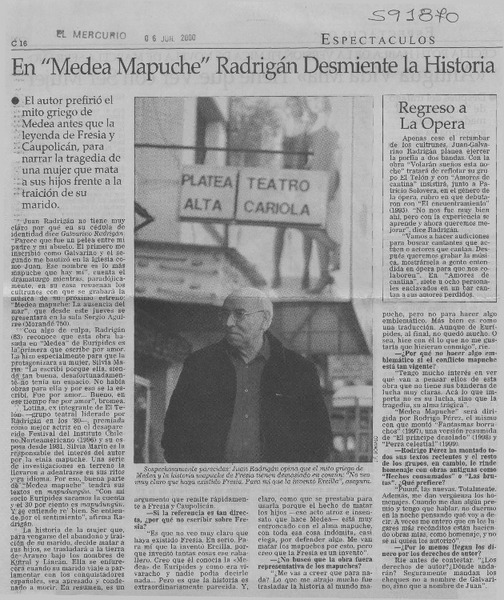 En "Medea mapuche" Radrigán desmiente la historia [artículo]