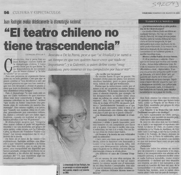 "El teatro chileno no tiene trascendencia" [entrevista] [artículo] : Leopoldo Pulgar I.