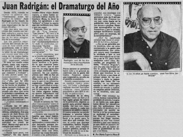 Juan Radrigán: el dramaturgo del año : [entrevista] : [artículo] Por María Eugenia Meza B.