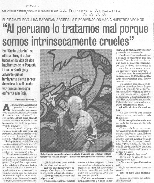 "Al peruano lo tratamos mal porque somos intrínsecamente crueles" [entrevista] [artículo] Fernando Estévez C.