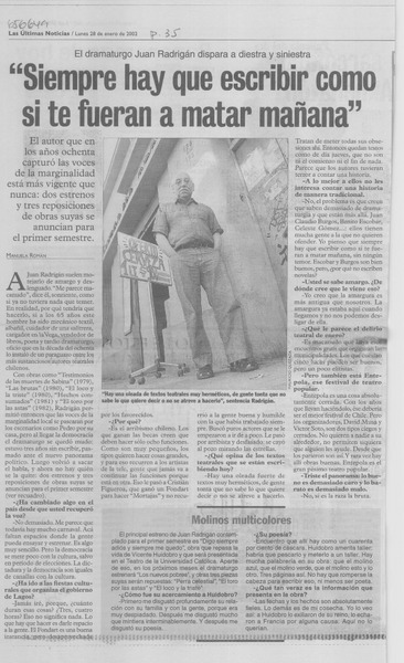 Siempre hay que escribir como si te fueran a matar mañana" [entrevista] [artículo] : Manuela Román.
