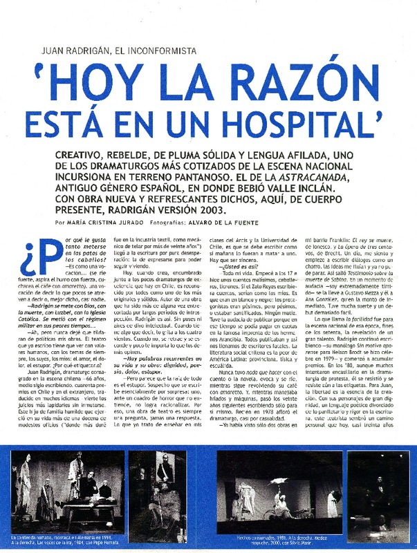 Juan Radrigan, "Antes de escribir, no existía" [entrevista] [artículo] : Silvia Peña Pinilla.