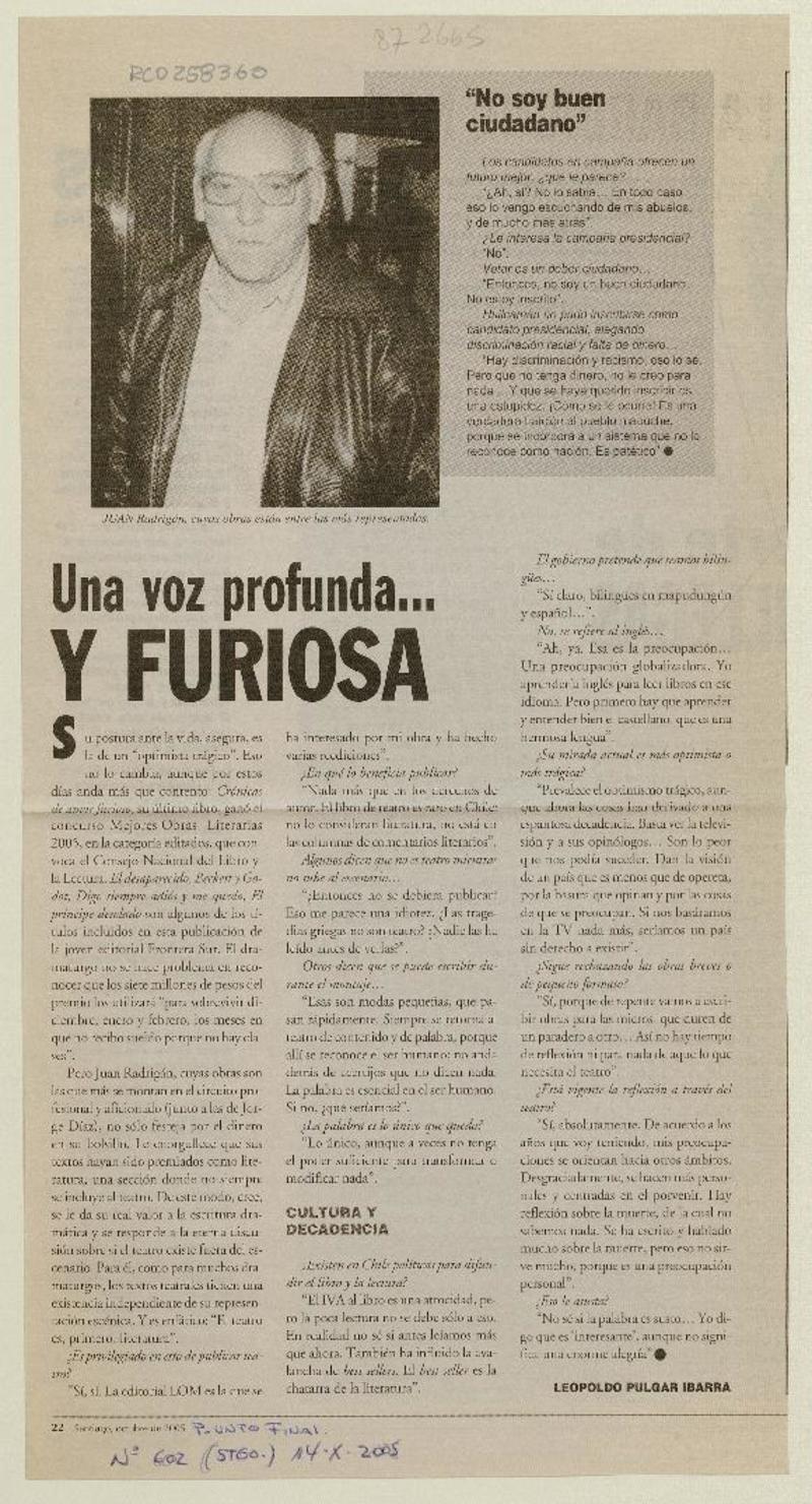 Una voz profunda... y furiosa. (entrevistas) [artículo] Leopoldo Pulgar Ibarra