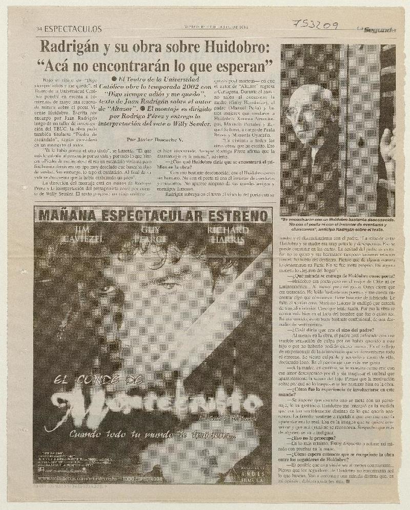 Radrigán y su obra sobre Huidobro, "acá no encontrarán lo que esperan" [entrevistas] [artículo] : Javier Ibacache V.