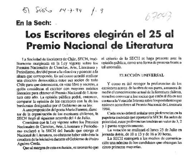 Los Escritores elegirán el 25 al premio nacional de literatura. [artículo]