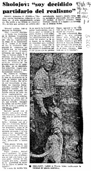 Sholojov, "soy decidido partidario del realismo" [artículo].