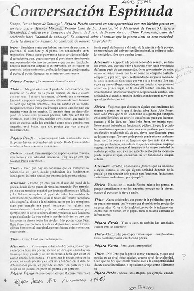 Zurita, Raúl - Díaz, Erwin - Nómez Concha, Naín - Elvira Hernández - Autores chilenos - Entrevistas