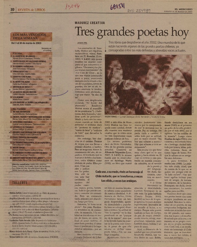Autoras chilenas - Berenguer, Carmen - Muñoz, Rosabetty - Chihuailaf, Elicura - Elvira Hernández