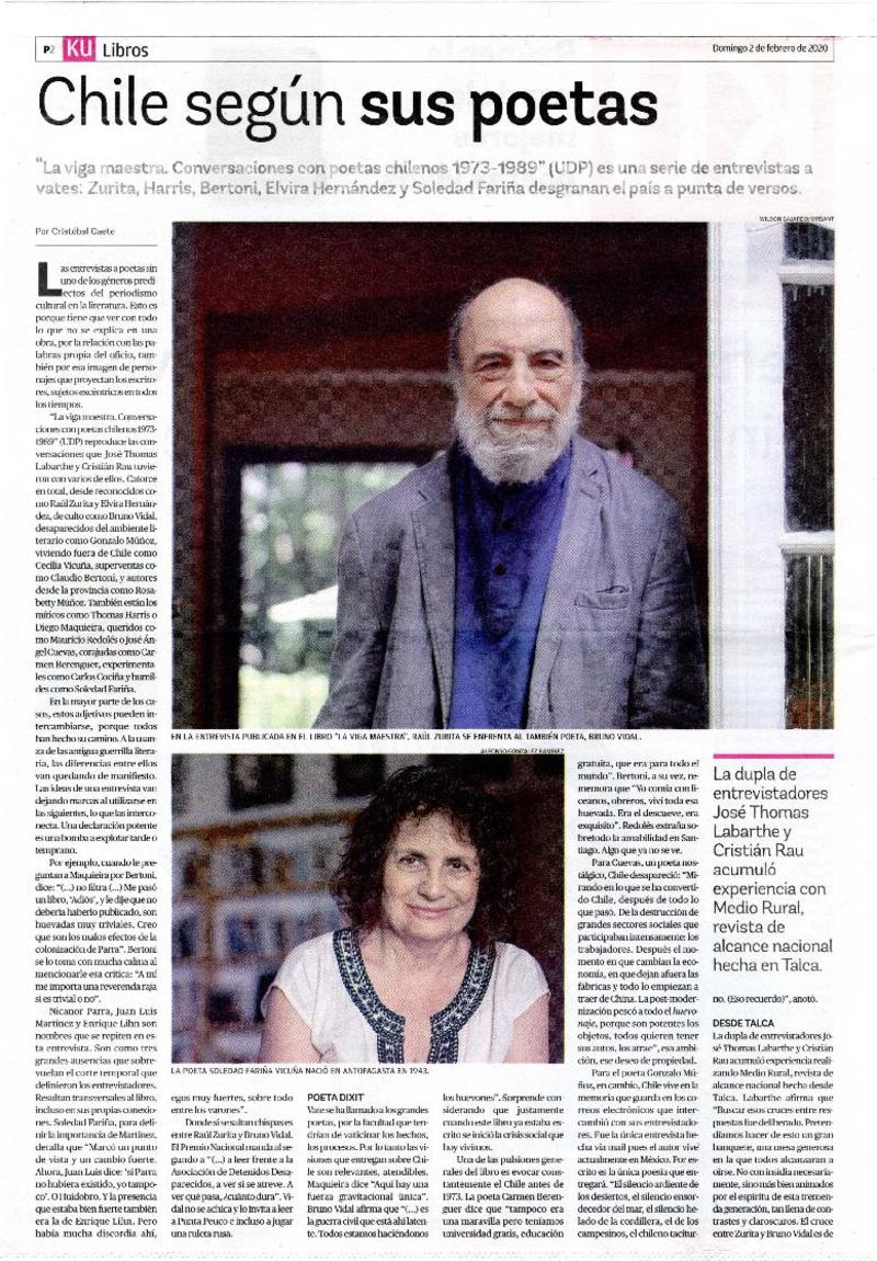 Chile según sus poetas [artículo] Cristóbal Gaete.