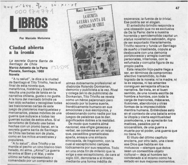 Ciudad abierta a la ironía [artículo] Marcelo Maturana.