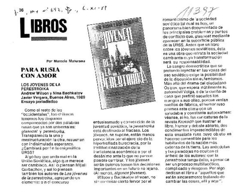 Para Rusia con amor [artículo] Marcelo Maturana.