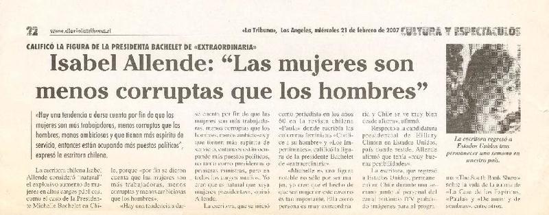 "Las mujeres son menos corruptas que los hombres" [artículo].
