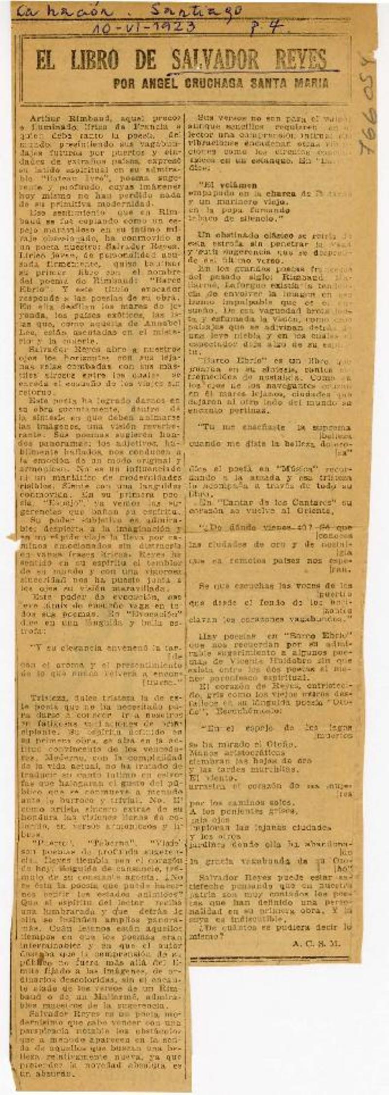 El libro de Salvador Reyes [artículo] Angel Cruchaga Santa María.
