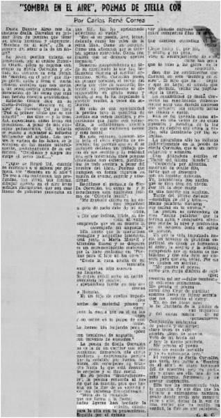 Sombra en el aire", poemas de Stella Corvalán [artículo] Carlos René Correa.