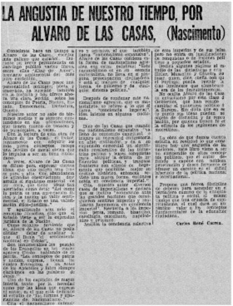 La angustia de nuestro tiempo, por Alvaro de las Casas [artículo] Carlos René Correa.
