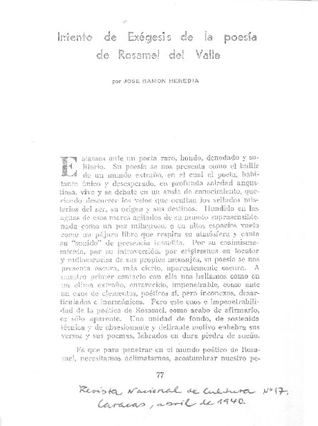 Intento de exègesis de la poesìa de Rosamel del Valle [artículo] José Ramón Heredia.