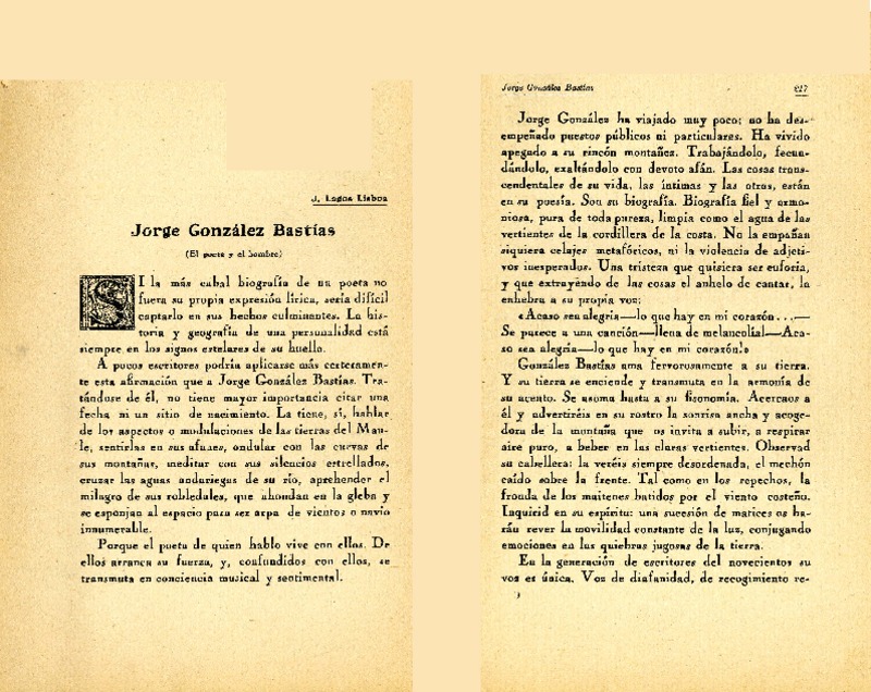 Jorge Gonzalez Bastías : el poeta y el hombre. [artículo]