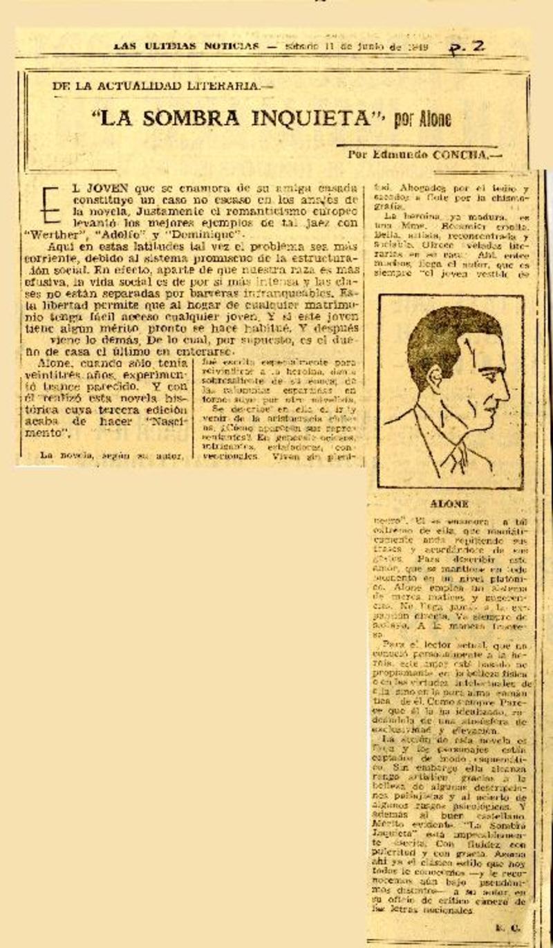 La sombra inquieta [artículo] Edmundo Concha.