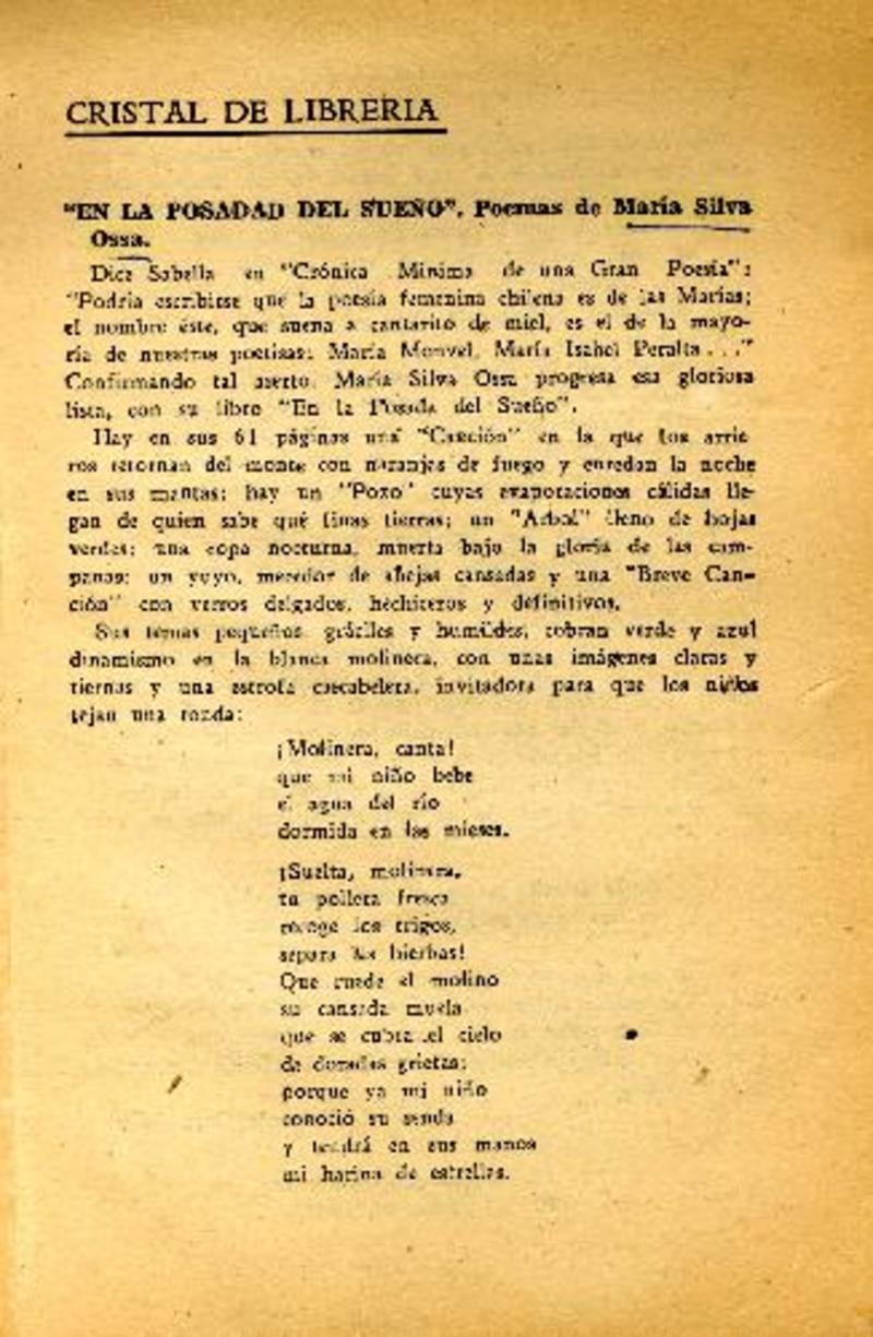 Autoras chilenas - Silva Ossa, María - En la posadad del sueño