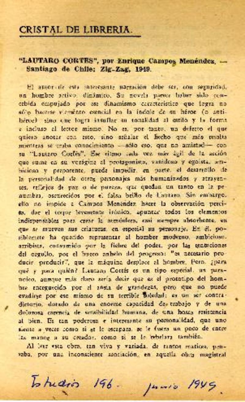 Autores chilenos - Campos Menéndez, Enrique - Lautaro Cortes