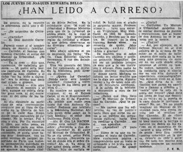 ¿Han leído a Carreño? [artículo] Joaquín Edwards Bello.