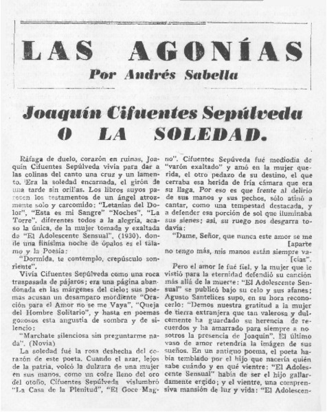Joaquín Cifuentes Sepúlveda o la soledad [artículo] Andrés Sabella.