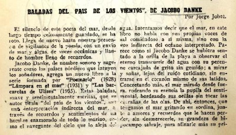 Baladas del país de los vientos", de Jacobo Danke [artículo] Jorge Jobet.