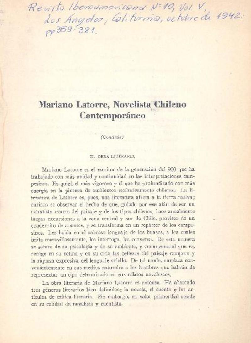 Mariano Latorre, novelista chileno contemporáneo [artículo] Magda Arce.