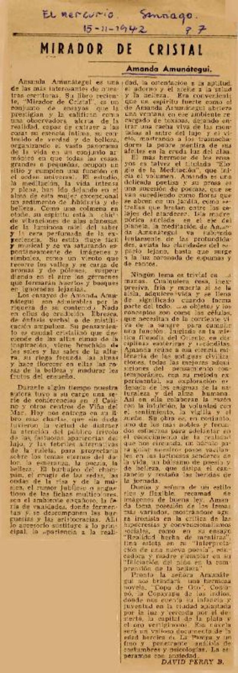 Autoras chilenas - Amunátegui, Amanda - Mirador de cristal