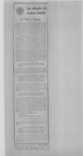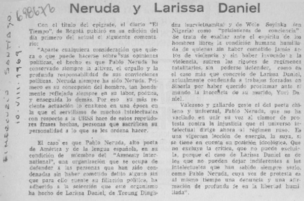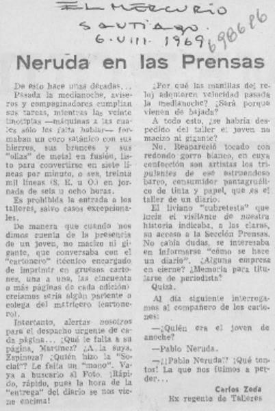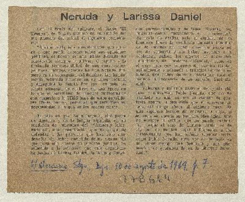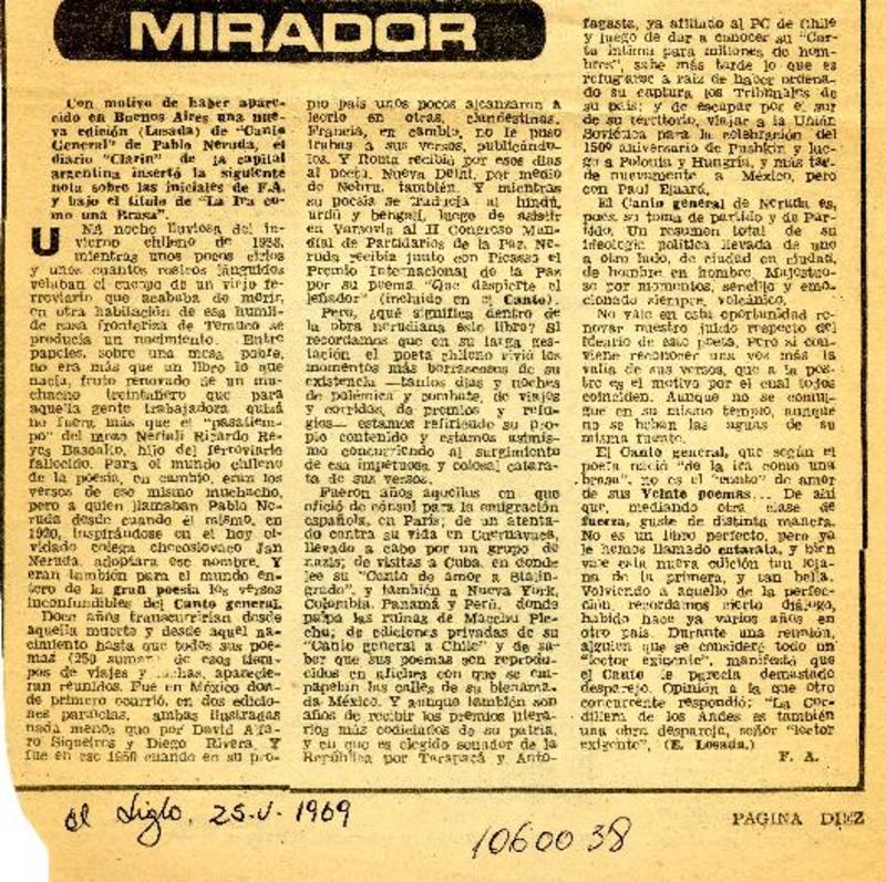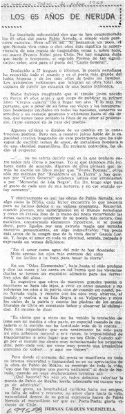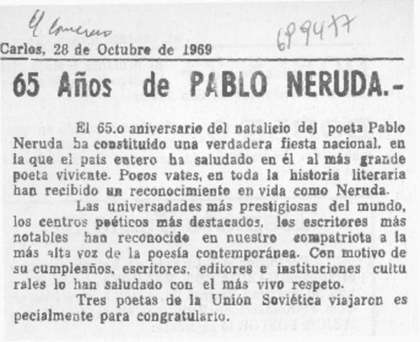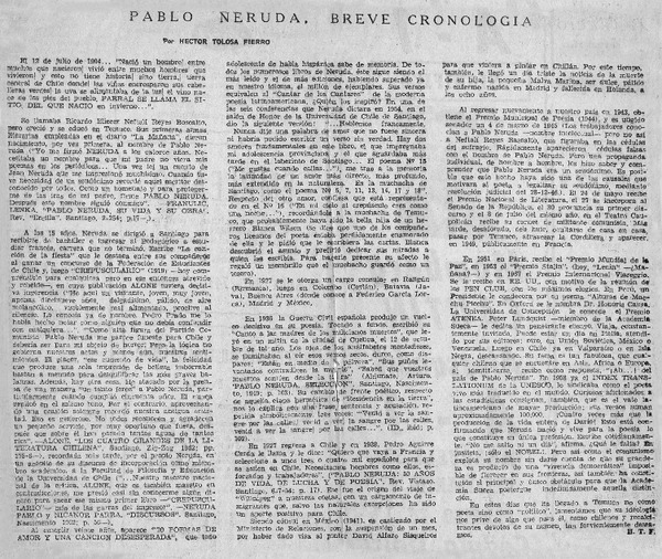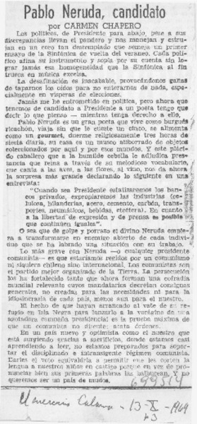 Víctor Jara cantará parabienes a Neruda [artículo].