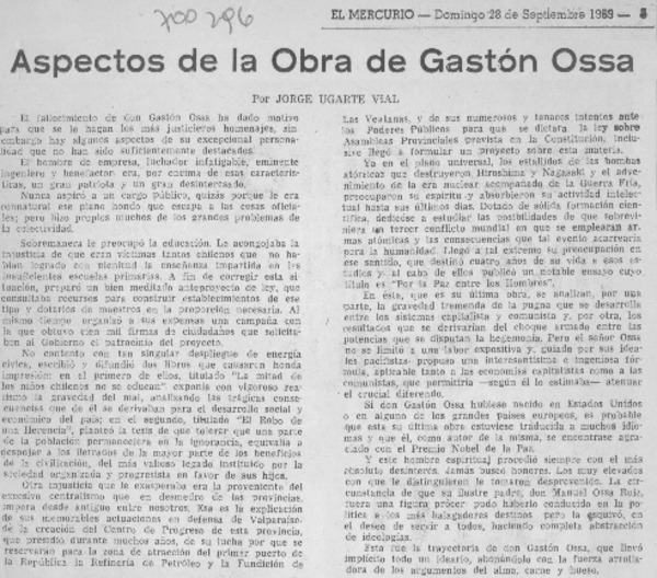 Un mundo que se fué" [artículo] Salvador Valdés Morandé.