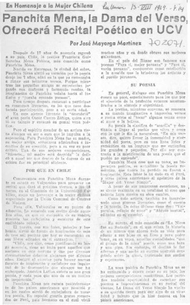 Agatha" Vergara [artículo] Eugenio Lira Massi.