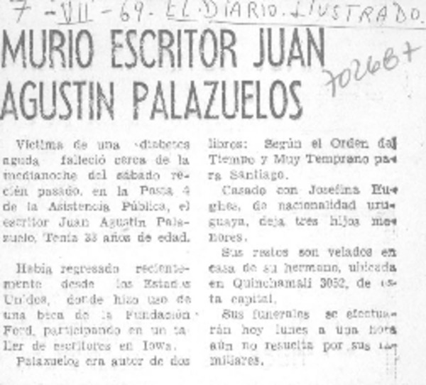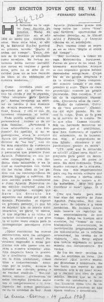 Un escritor joven que se va! [artículo] Fernando Santiván.