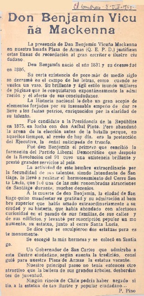 Vicuña Mackenna y nosotros [artículo] Mario Céspedes.