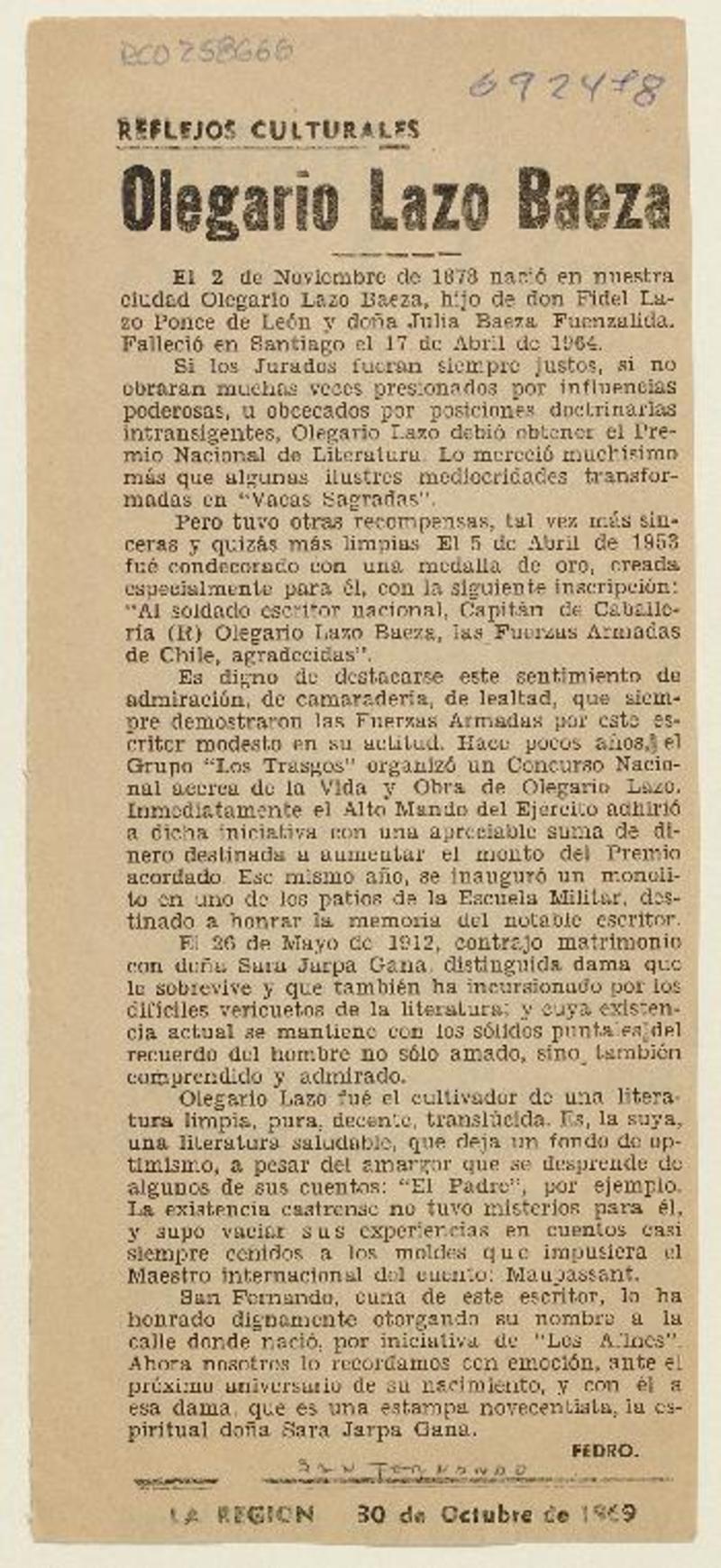 Autores chilenos - Neruda, Pablo - Eslava, Ernesto - Lillo, Baldomero - Teillier, Jorge - Alegría, Fernando - Valente, Ignacio