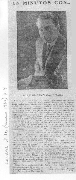 15 minutos con Juan Guzmán Cruchaga (entrevista) [artículo] S. R.