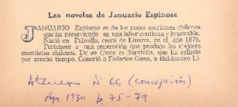 Las novelas de Januario Espinosa [artículo] Ricardo A. Latcham.