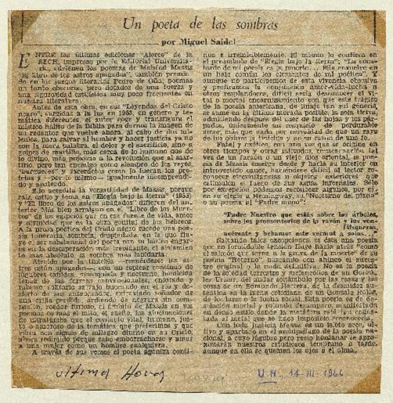 Un Poeta de las sombras [artículo] Miguel Saidel.
