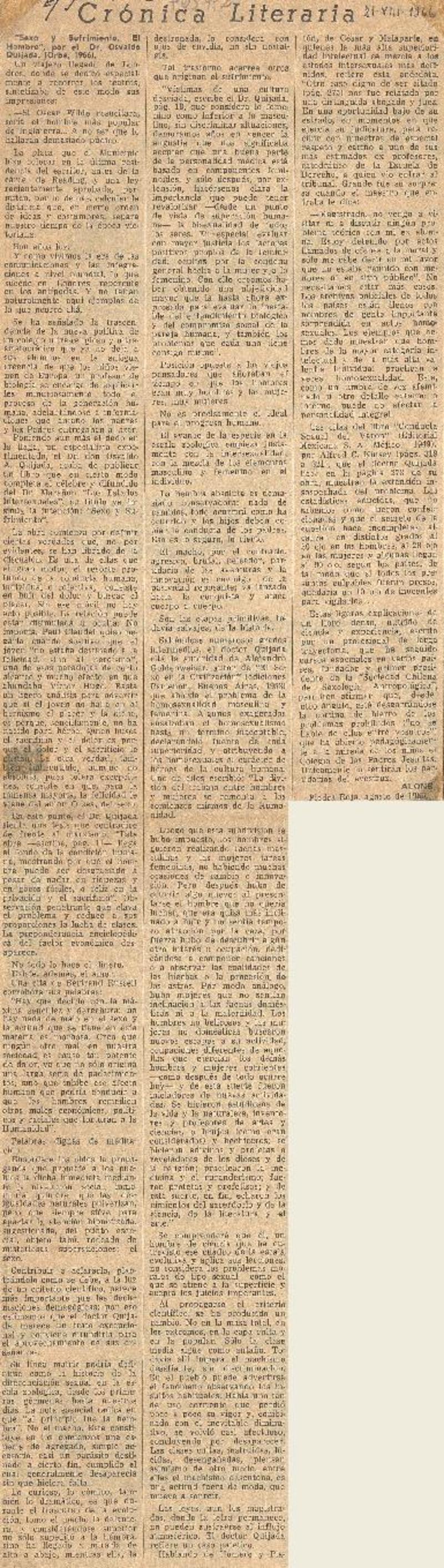 "Sexo y sufrimiento, el hombre" [artículo] Osvaldo Quijada.