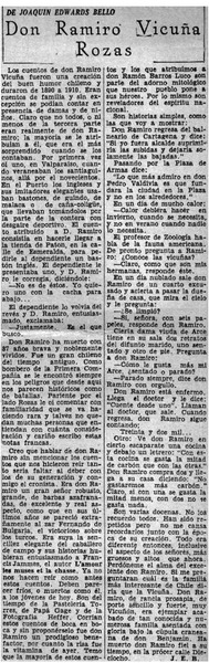 Don Ramiro Vicuña Rozas [artículo] Joaquín Edwards Bello.