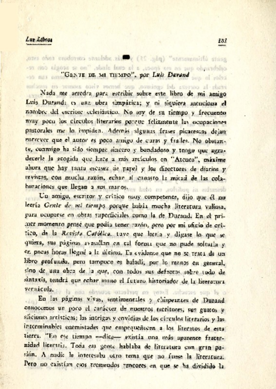 "Gente de mi tiempo", por Luis Durand [artículo] Fidel Araneda Bravo.