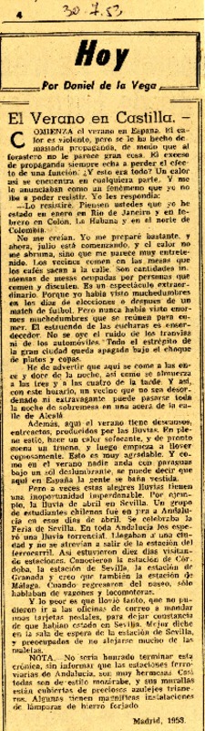 El verano en Castilla [artículo] Daniel de la Vega