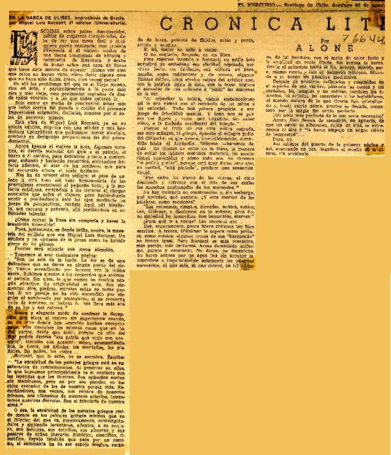 Crónica literaria [artículo] Alone.