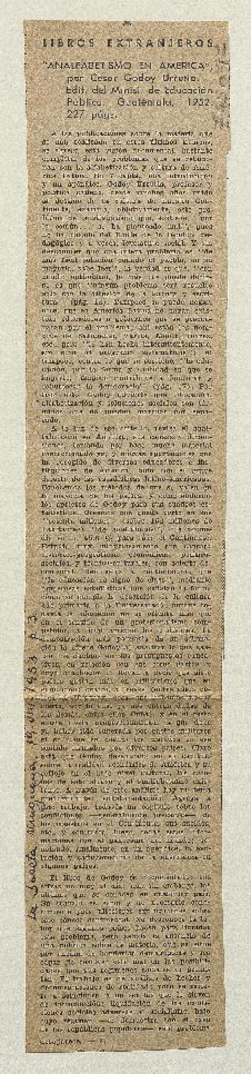 "Analfabetismo en América" [artículo] J.