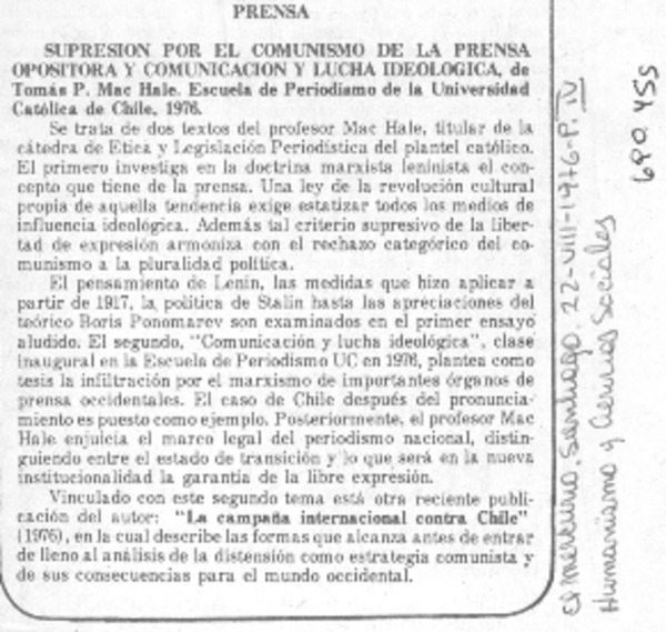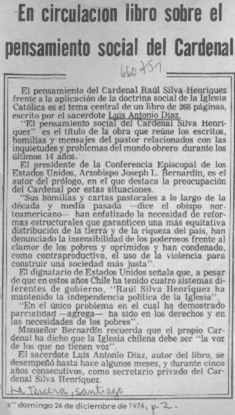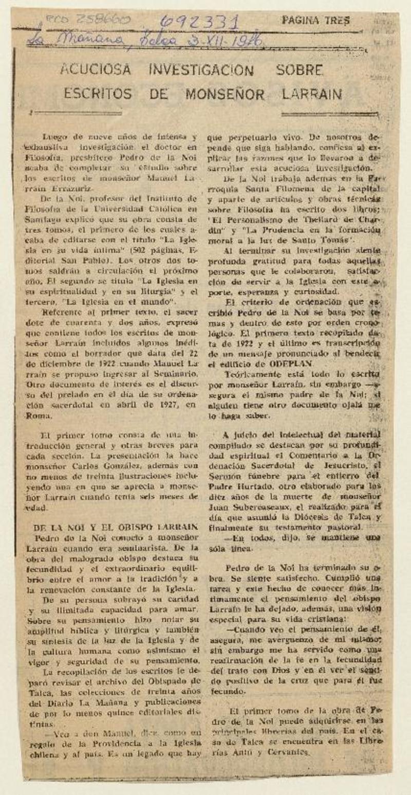 Acuciosa investigación sobre escritos de Monseñor Larraín. [artículo]