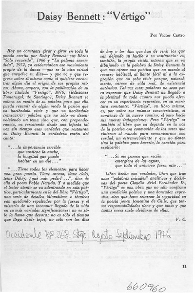 Autoras chilenas - Bennett, Daisy - Vértigo