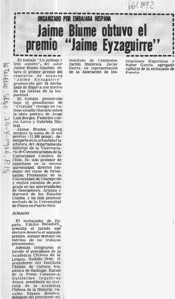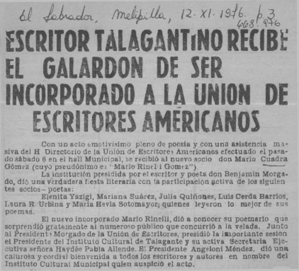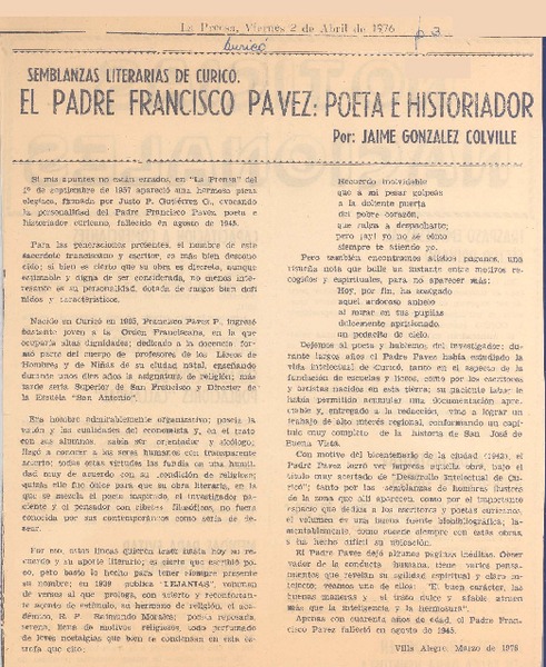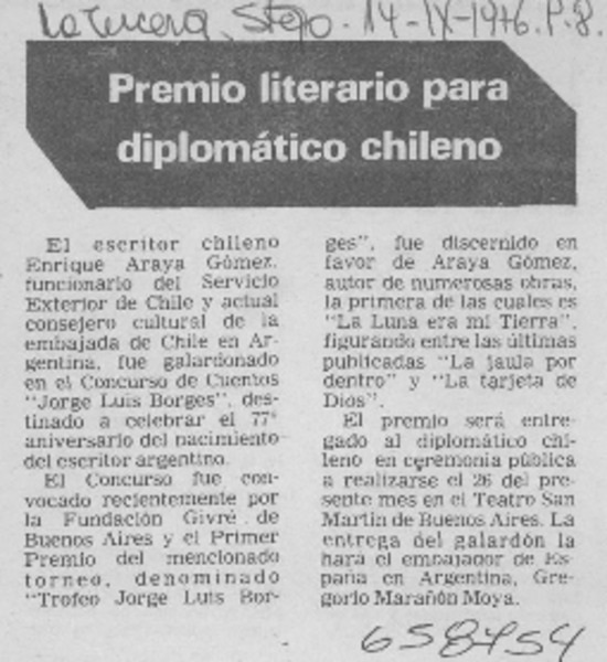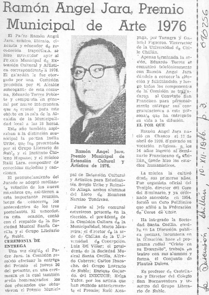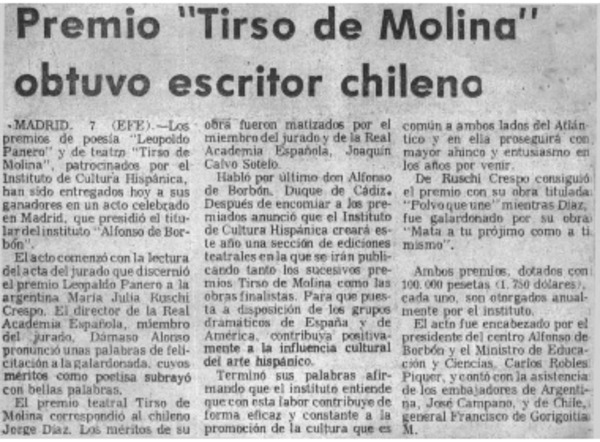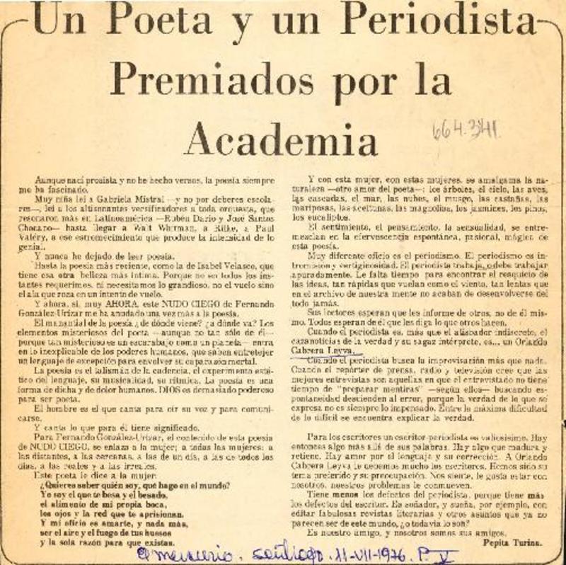 Un poeta y un periodista premiados por la academia [artículo] Pepita Turina.
