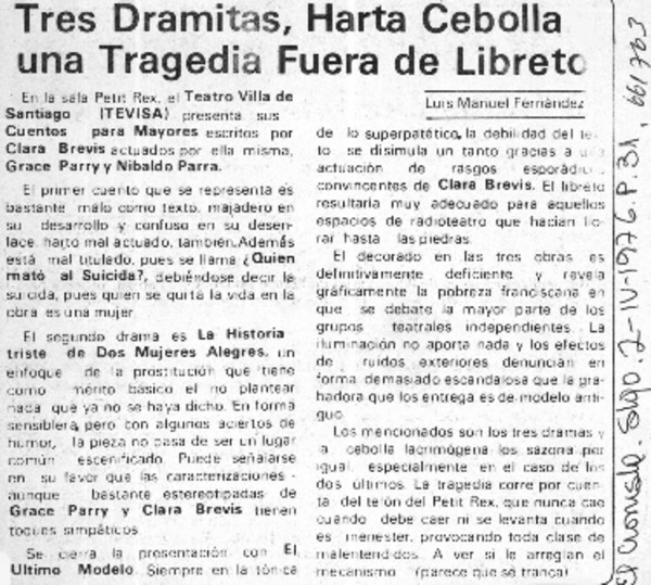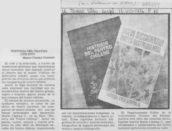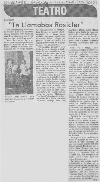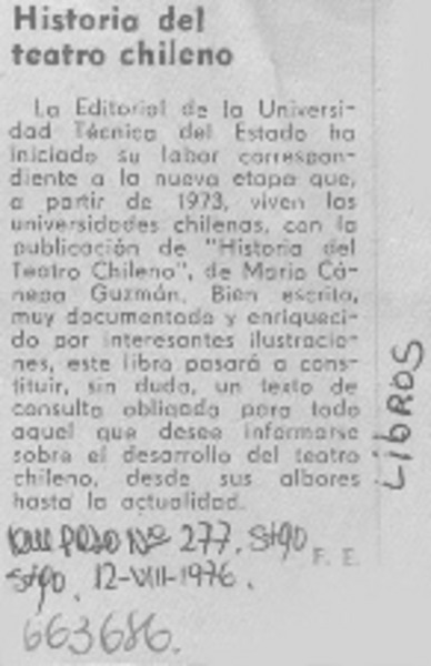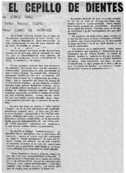 Un vistazo al medio teatral : [comentario] [artículo] Yolanda Montecinos.